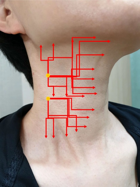 ◆18G尖針開洞(顴骨上方) 頸部治療