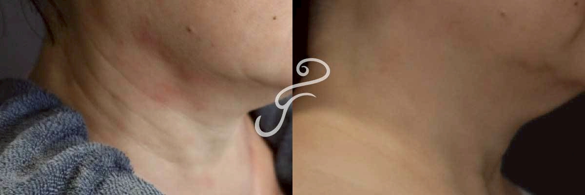Juvelook 50mg 的微粒較小,適合淺層注射如真皮層,對於膚質紋理改善有極大的幫助,因此常被應用於疤痕、全臉水光等治療。此外針對皮膚較薄處的凹陷填補,如淚溝、頸紋等,也有不錯的效果。