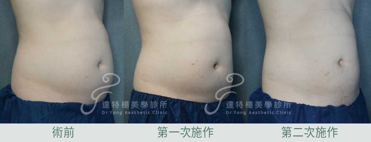 療程後的數週至數月,剩餘脂肪細胞重新排列壓縮後,脂肪層變薄。