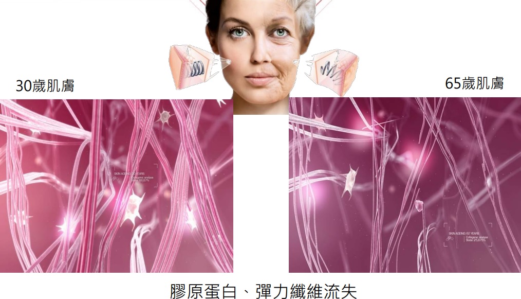•膠原蛋白 使肌膚更緊實 •彈力纖維 使肌膚更加柔軟有彈性+46%