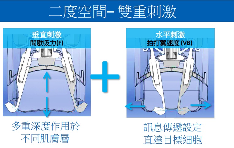 ♦機械物理性刺激—組織按摩 =負壓吸力 + 動力雙專利接頭 or 提拉接頭 →作用於結締組織與肌肉組織,組織重建,修復功能