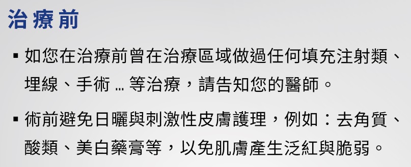 上述因每人體質不同效果皆會不同,進行療程前請先諮詢醫師,均以醫師親自說明為準。