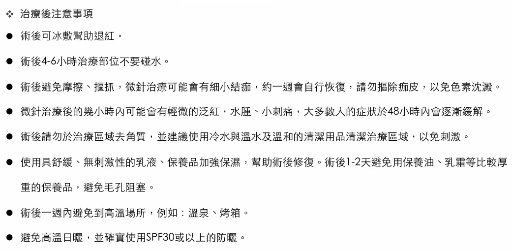 *圖片案例經過本人肖像權同意,各案會因個人體質而不盡相同,必須經過醫師專業評估而進行,相關問題親自洽詢本院醫療團隊,實際情況由醫師說明為主。 *皮膚狀況、治療方式及成效因人而異,請親自遵循醫師醫囑,診所均由醫師視個人狀況給予建議。 *本宣傳名稱與仿單不同,部份仿單核准適應症外的使用介紹,或口語化供民眾理解,僅供參考,正式療程、儀器名稱、效果、適應症、禁忌症等,均為醫師親自說明。 *侵入式手術造成開放式傷口,術後有傷口照護不當或其他因素所造成之傷口感染風險。更多醫療風險、禁忌症、副作用會於與醫師溝通諮詢時,由醫師評估個人情況後告知。