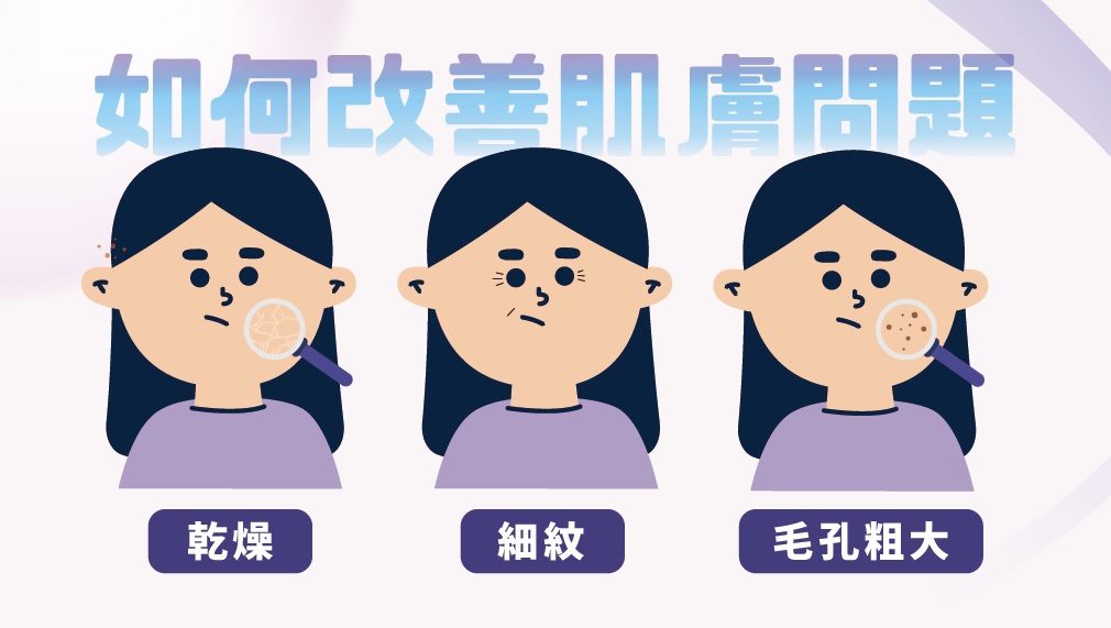 保濕補水-玻尿酸 美顏亮白-維他命、傳明酸 緊緻肌膚-肉毒桿菌 改善膚況-PLT凍晶