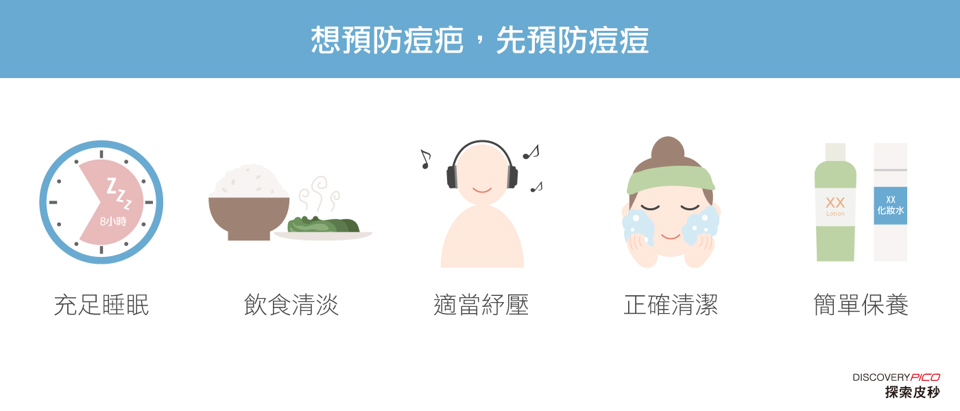 【想預防痘疤 先預防痘痘】 充足睡眠/飲食清淡/適當紓壓/正確清潔/簡單保養