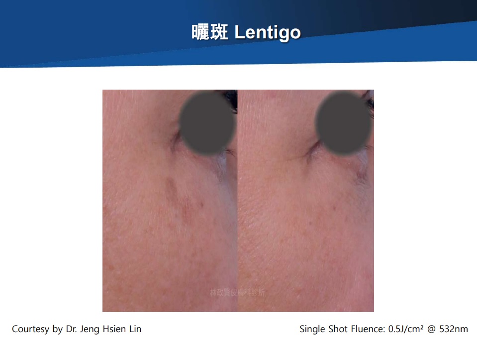 秒殺黑色素(除斑): 感到最困擾的肌膚問題就是臉上暗沉沒有光澤、斑點曬斑、毛孔粗大...等,臉上有掃不完的歲月痕跡。皮秒的能量集中,能瞬間震碎黑色素粒子,能力更好,清除率更高。 也由於在能量耗損前瞬間就震碎目標物,減少了組織熱傷害程度,有效降低術後反黑機率、更安全,即便深色皮膚治療也不用擔心。所以在亞洲人種或治療對熱敏感的肝斑治療,特別有幫助。