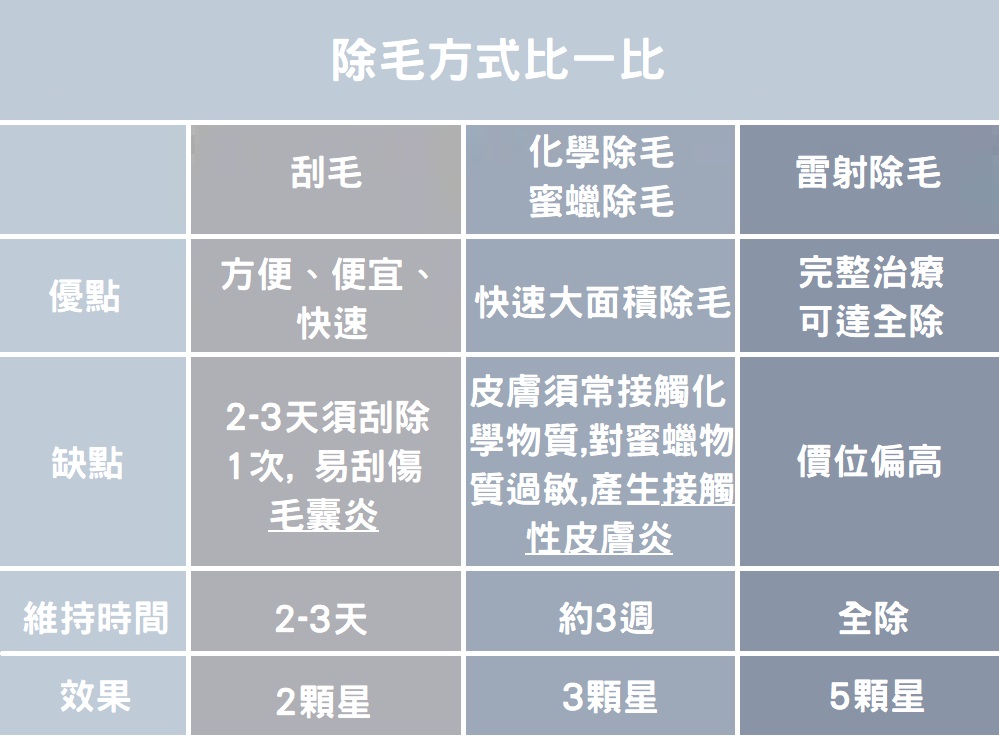 除毛方式比一比: