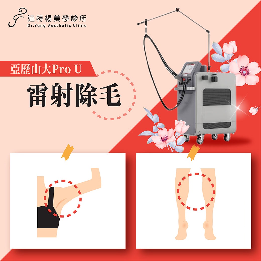 這樣的妳可以考慮施作亞歷山大除毛除斑雷射 ( Pro U 透白機 ) : 1. 不想當綺夢, 手毛腳毛旺盛, 顧及穿衣禮節不想腋毛外露 , 有除毛需求者。