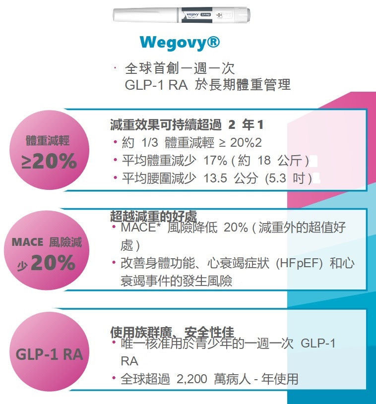 Wegovy 全球首創一週一次 GLP-1 RA 用於長期體重管理