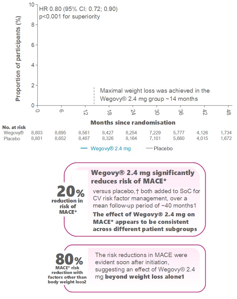Wegovy® 能讓 MACE 風險降低 20% Wegovy® 持續治療能顯著降低心血管事件的發生風險