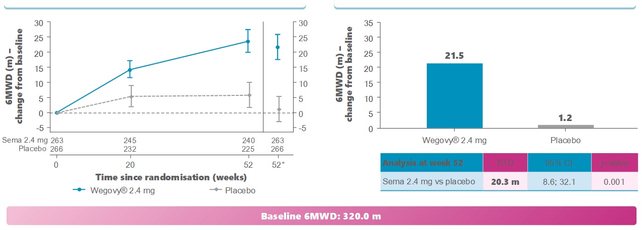 Wegovy® 能改善病患的身體功能 Wegovy® 持續治療能顯著提升 6MWD 分數