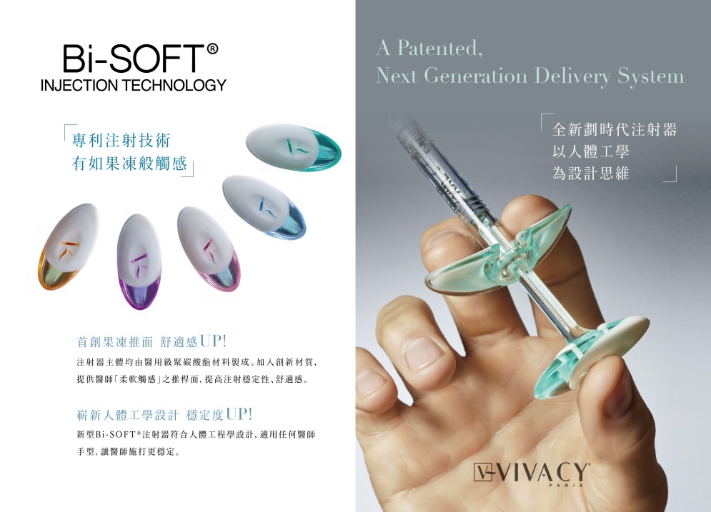 Bi-SOFT®專利注射技術,搭配小香風玻尿酸-第三代玻尿酸VIVACY魔V針® 在醫學美容市場中不斷追求創新卓越,VIVACY法國實驗室開發了一種獨特的Bi-SOFT®專利注射技術,提供「更高的精確度」、「舒適度」和「控制度」,專為醫師美容治療的日常實踐而設計。