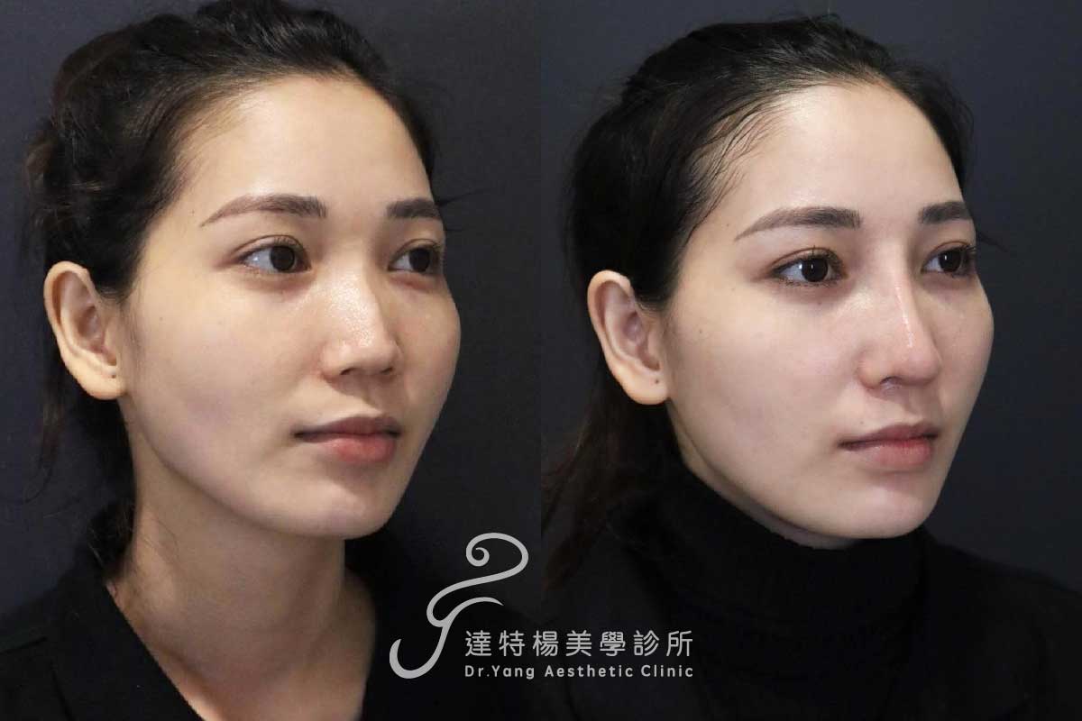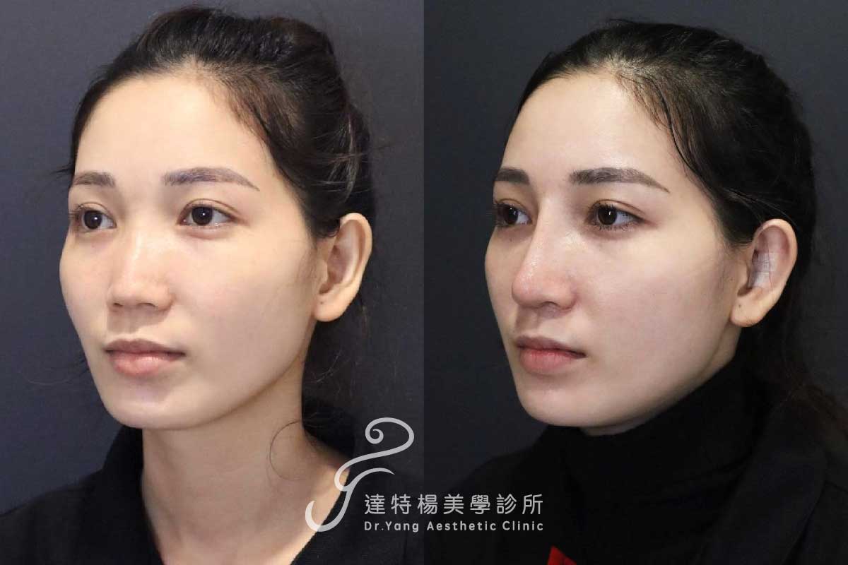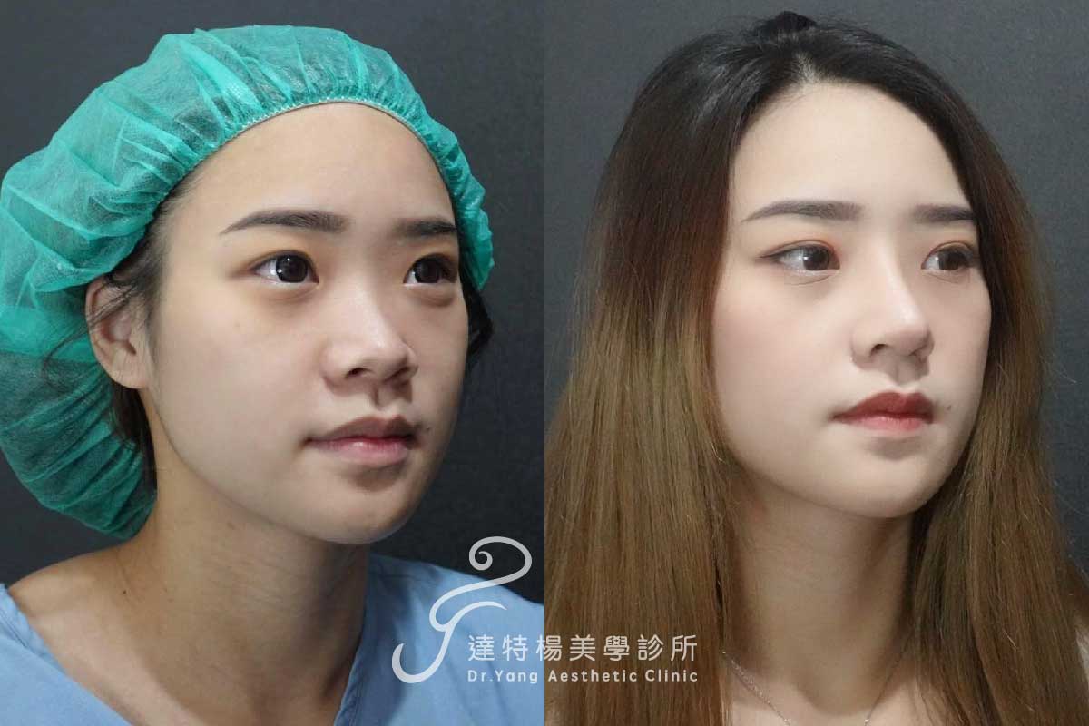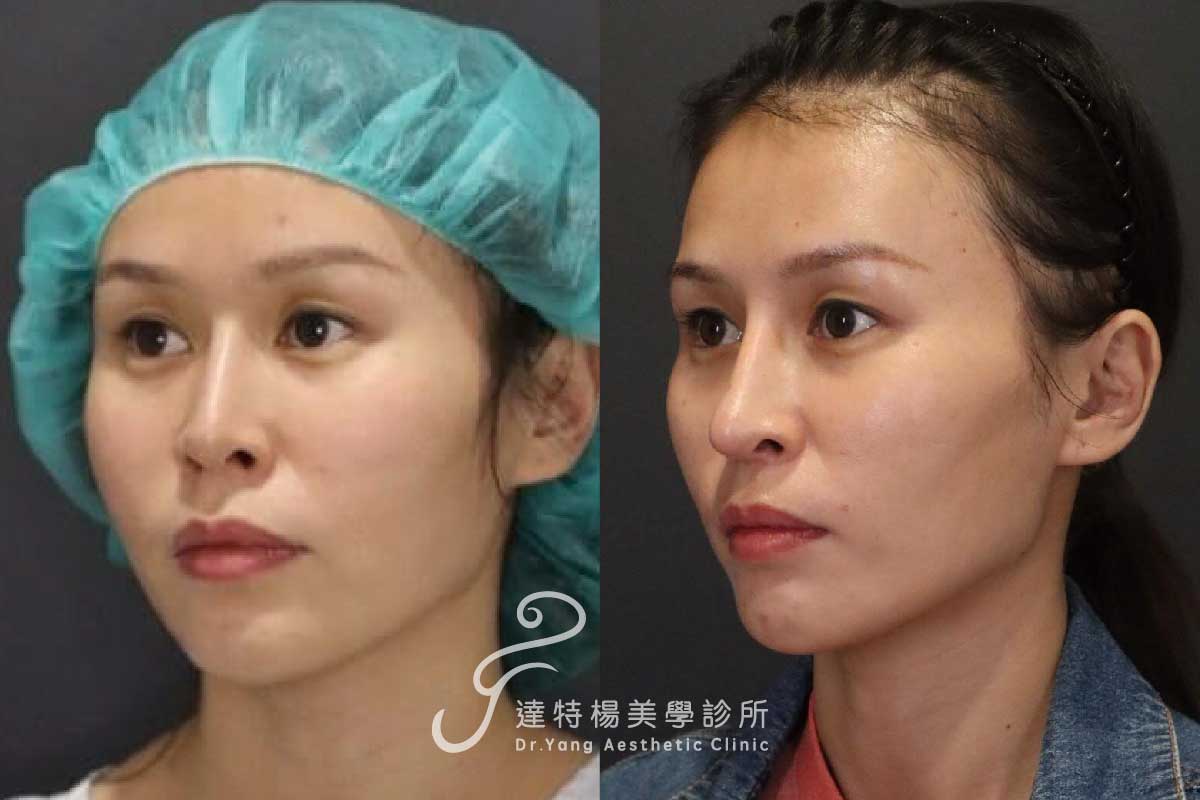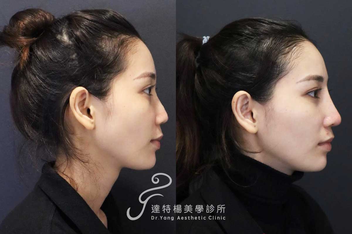 鼻型更柔順臉蛋更秀氣 三段式隆鼻院內案例 這位美眉透過三段式隆鼻改善了鼻柱不順暢的問題,原先的鼻型讓美眉看起來比較剛烈,三段式隆鼻手術(又稱為複合式、結構式隆鼻),透過假體或自肋墊高延長鼻梁,再取適合的耳軟骨來撐起鼻頭的部分,讓鼻尖能更好的塑形也能有保護鼻頭不被鼻模刺穿的風險,延長鼻中膈軟骨的部分,讓鼻型更加挺拔。三段式隆鼻手術過程比較繁瑣且環環相扣,非常考驗醫師的技術及美感,全方位的考量才能朔造出客製化的理想鼻型。
