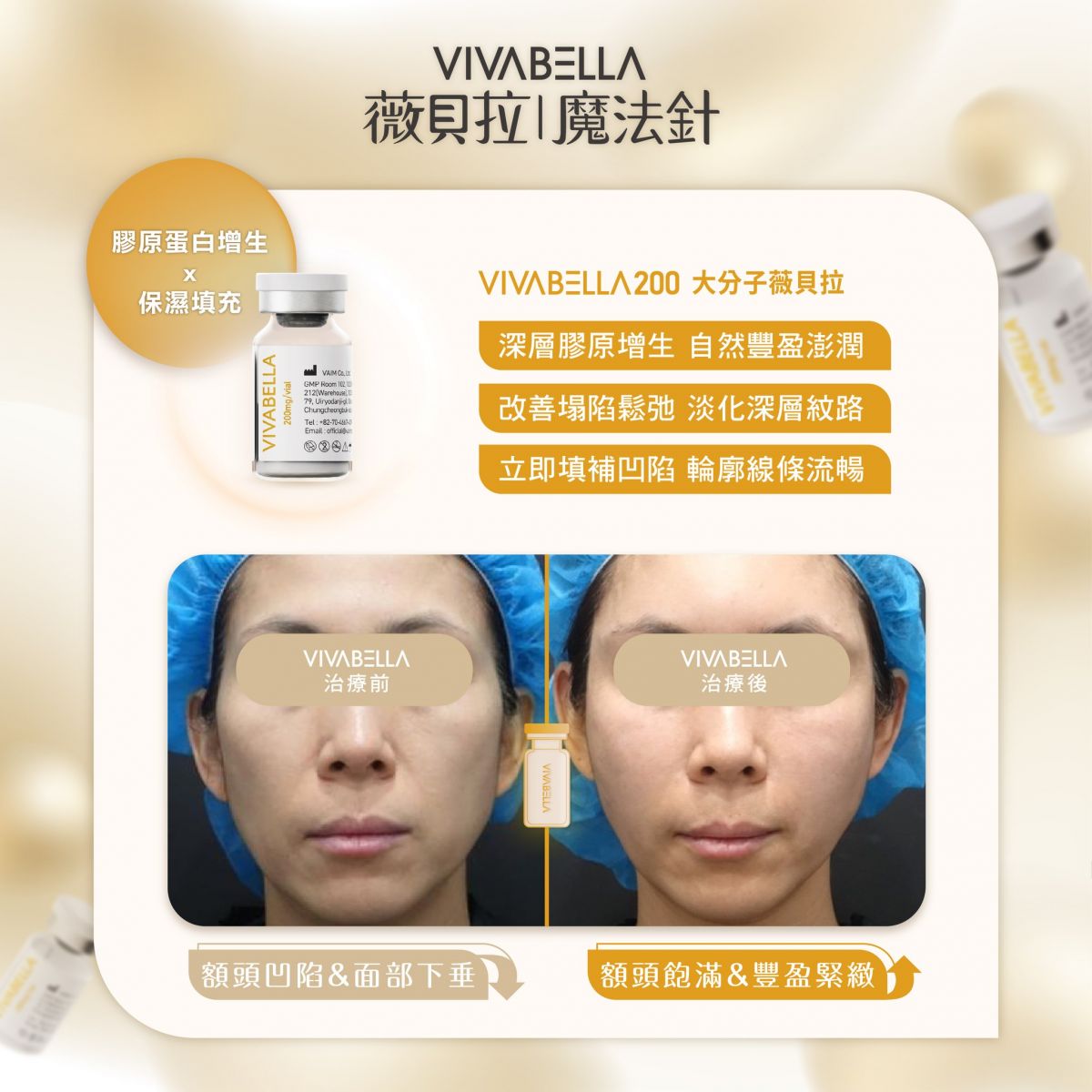VIVABELLA 200 大分子 → 結構支撐、輪廓填補、深層膠原刺激