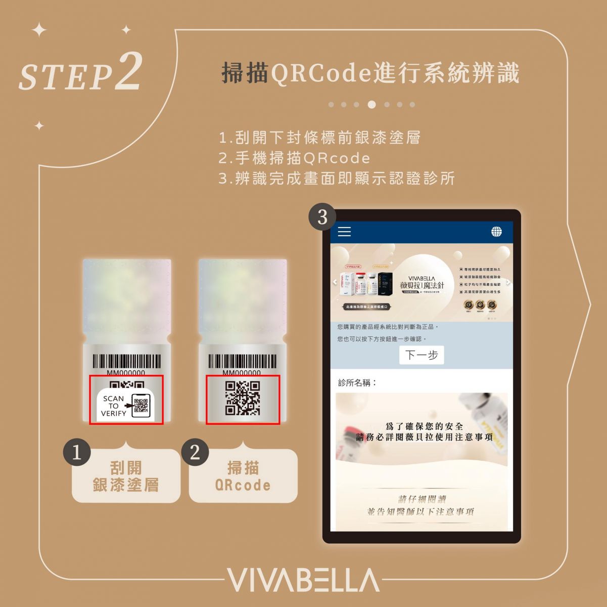 防偽2.刮開下封條標籤銀漆塗層,掃描QR Code確認系統辨識完成