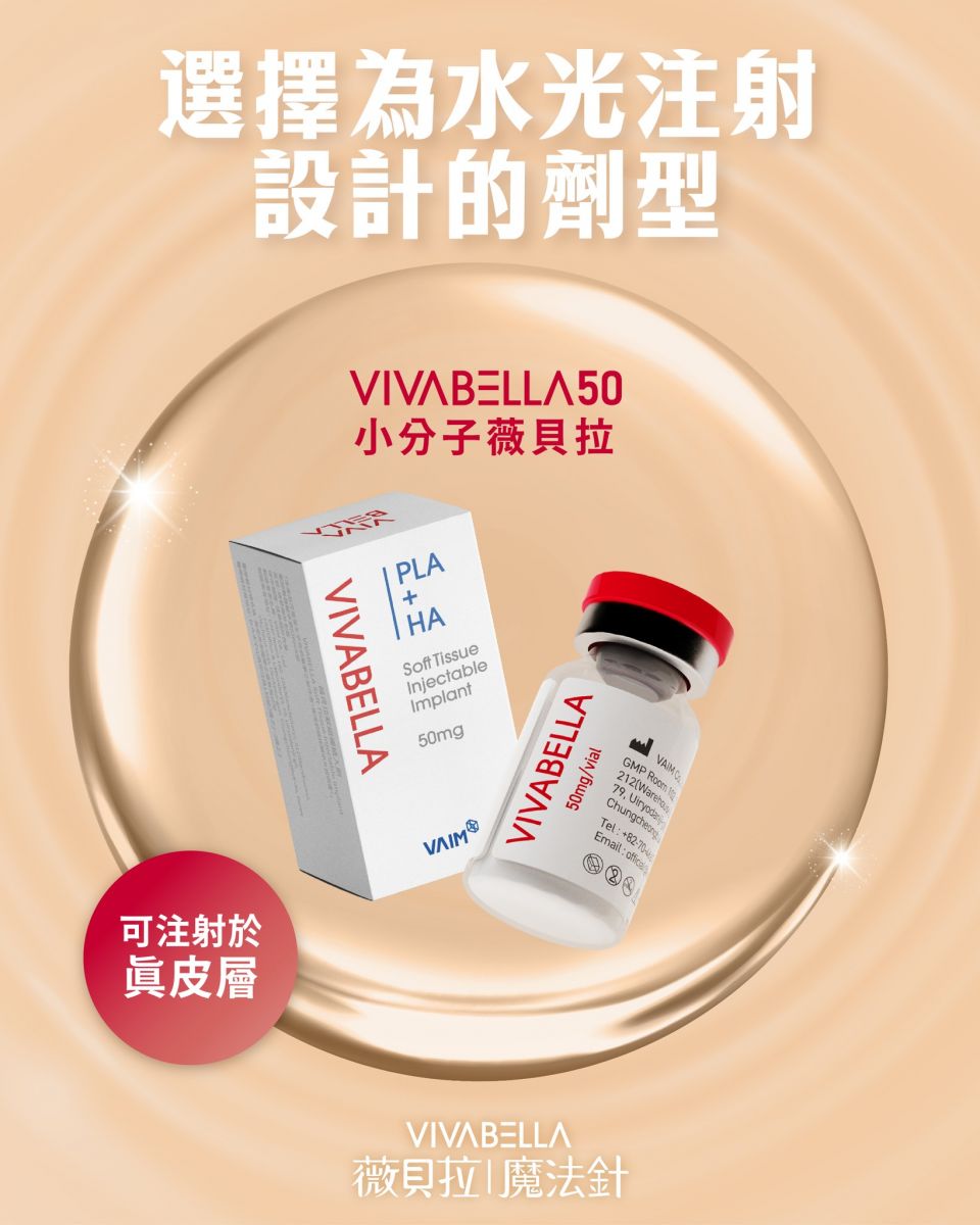 VIVABELLA 50 小分子 → 分子細小,可注射至真皮層,達到均勻吸收、溫和刺激膠原、提升肌膚水感與彈性