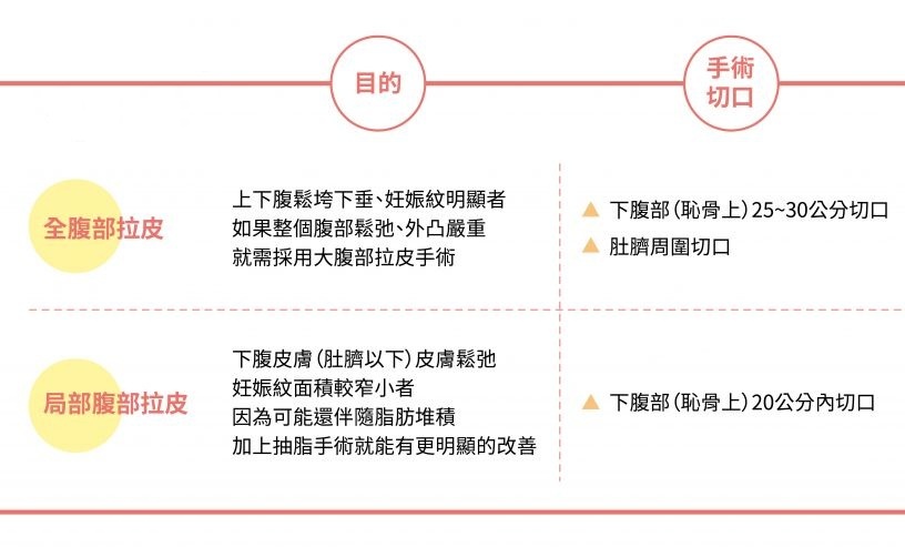 ![]() 全腹部拉皮&局部腹部拉皮比一比: