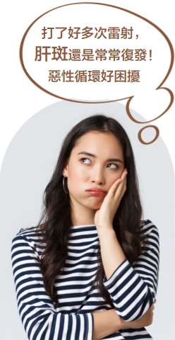 受皮膚困擾的您是否也有以下狀況呢? 已經打了好多雷射,斑點卻一再復發!還開始出現白斑!