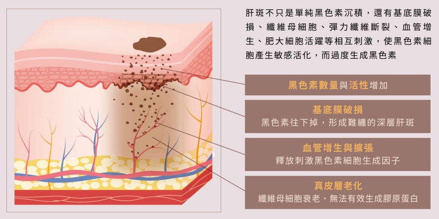 !其實,肝斑不只是表面斑點問題,更關乎於「皮膚生態系失衡」 造成肝斑的原因