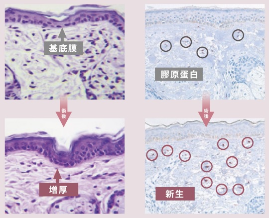 臨床研究實證,接受治療後,明顯增厚基底膜,新生膠原蛋白。