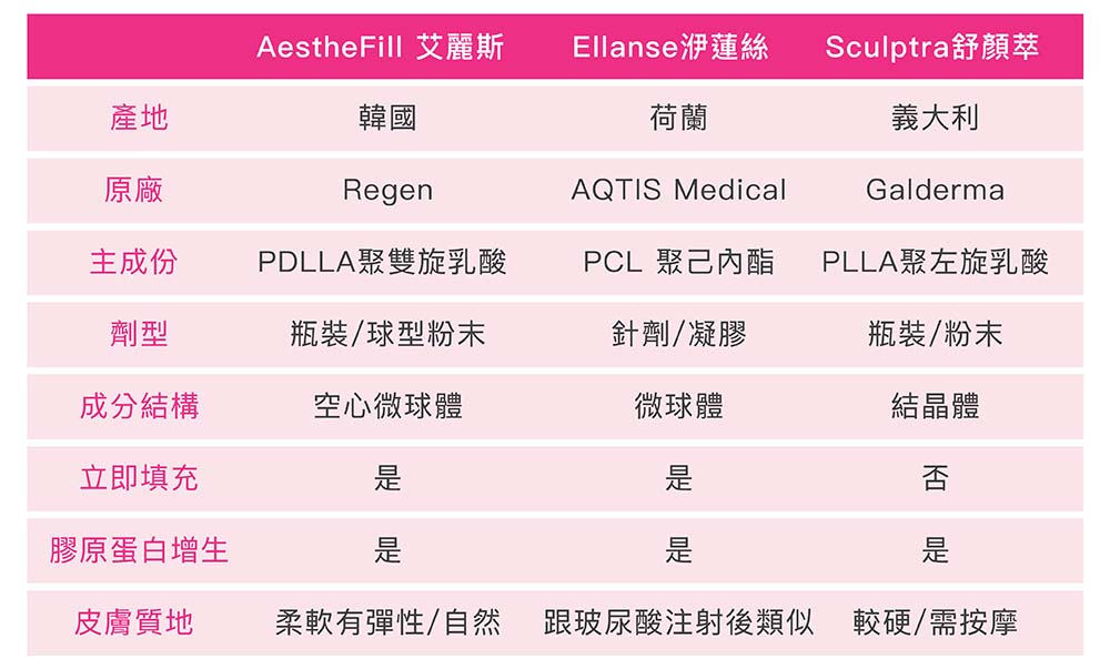 精靈聚雙旋乳酸的產品外觀為白色球體,使用前需用無菌水泡製至少30分鐘使其溶解。泡製後的聚雙旋乳酸,在高倍數顯微鏡底下,會看到空洞的球體,這就是精靈聚雙旋乳酸的「多孔性微球體」科技。多乳性微球體進入皮膚後,可吸引膠原蛋白至球體內部居住、生長,漸漸長出更多自己的膠原蛋白。