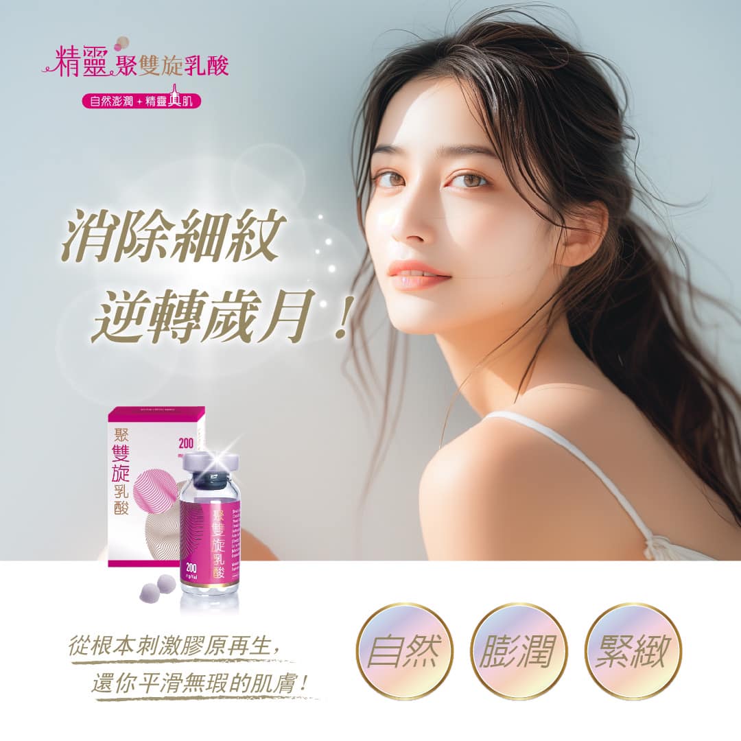 消除細紋,逆轉歲月! 聚雙旋乳酸專為邁入30女性設計,達到自然、飽滿、緊緻三大美肌效果。 適合:醫師推薦給追求自然美肌的愛美女性 專業醫美成分:讓妳輕鬆擁抱青春,重拾自信! 讓膠原再生,展現自然美!