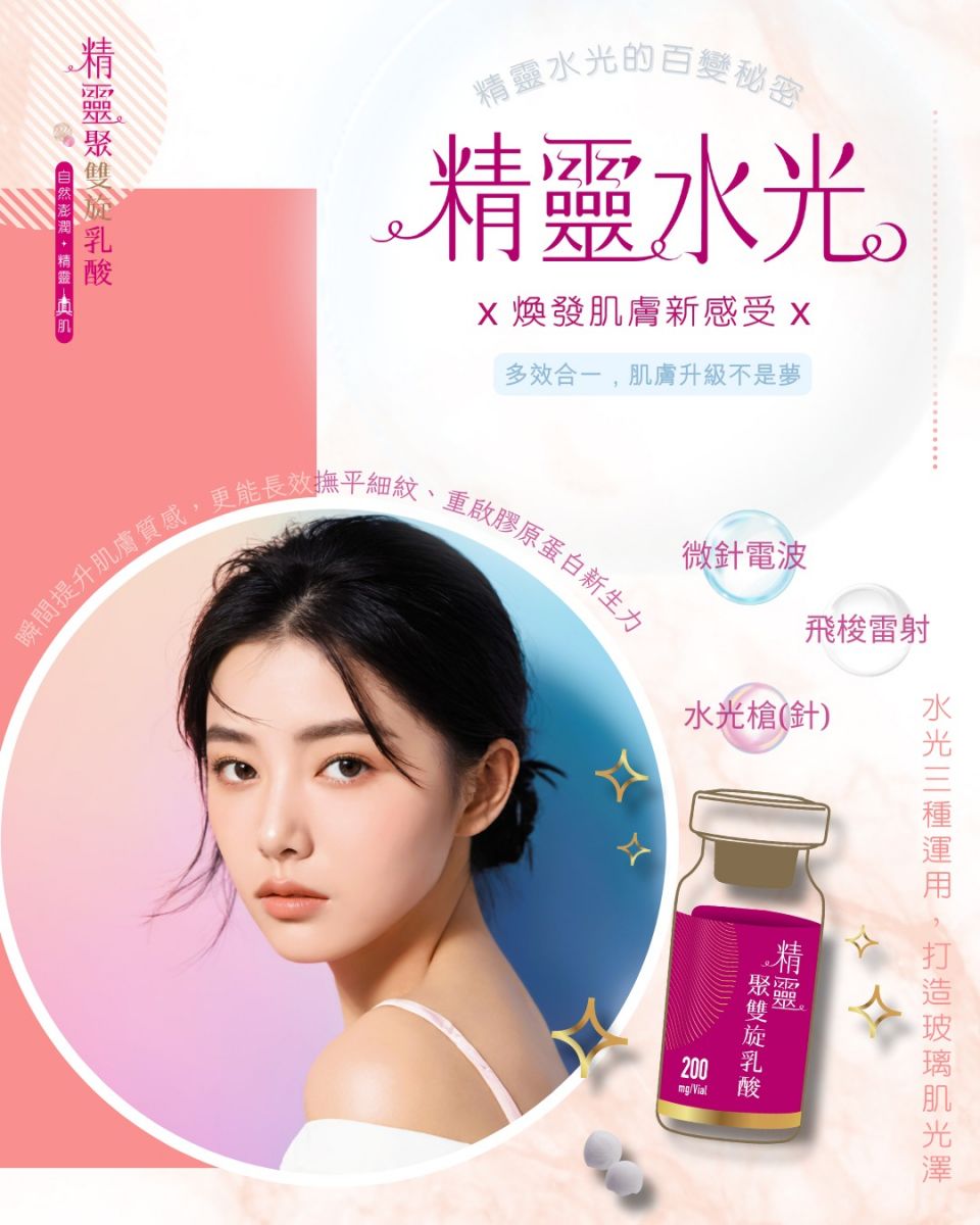 關於精靈聚雙旋乳酸 精靈聚雙旋乳酸是一種新型態的聚『雙旋』乳酸,專利多孔性微球體結構,可誘導促進皮膚第一型膠原蛋白增生,屬於自然再生型填充劑,長效再生最自然柔軟的豐盈肌膚,青春再現,自然回溯年輕。