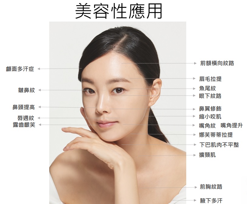 A:以肉毒桿菌素的治療機制而言,是應用暫時性放鬆肌肉達到皺紋減少的目的。因此只要經由醫師評估,選擇適合此治療機制作用的部位,並且使用適當劑量及注射技巧,可作適當應用。