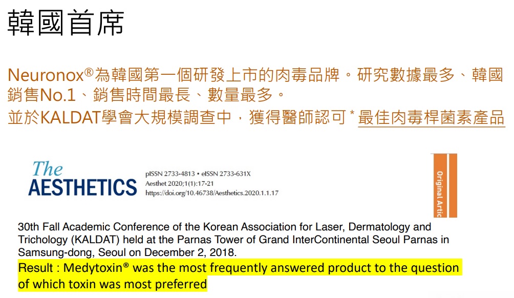 ●當地媒體報導: 韓國首個研發成功並上市的肉毒桿菌素