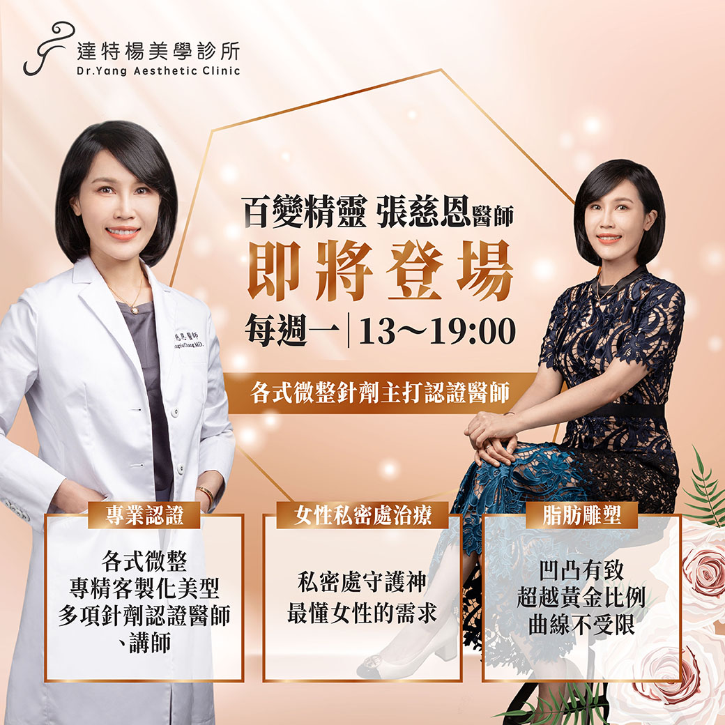10月起【百變精靈 張慈恩醫師】即將登場達特楊美學診所