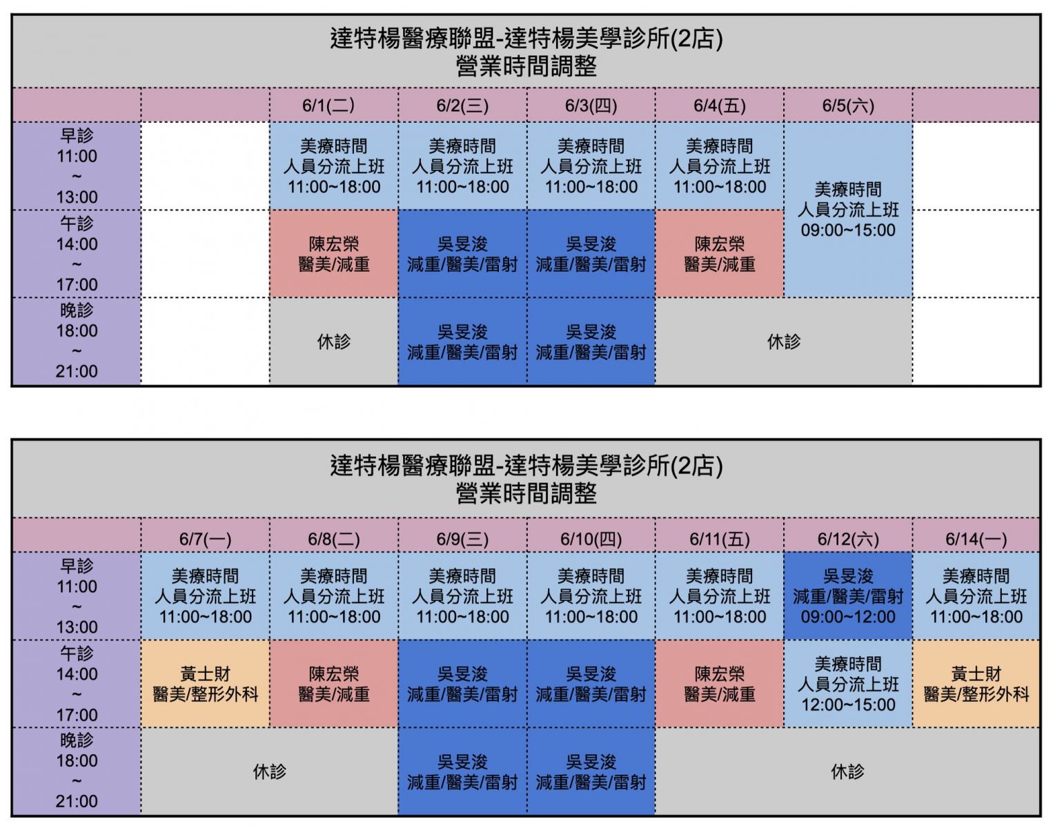 【6/1~6/14門診表異動】 因應疫情人員及顧客分流控管, 門診調整