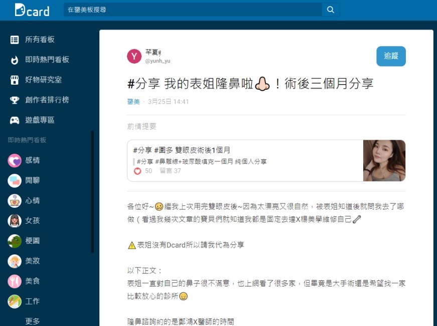 我的表姐隆鼻啦!術後三個月分享【Dcard #分享】