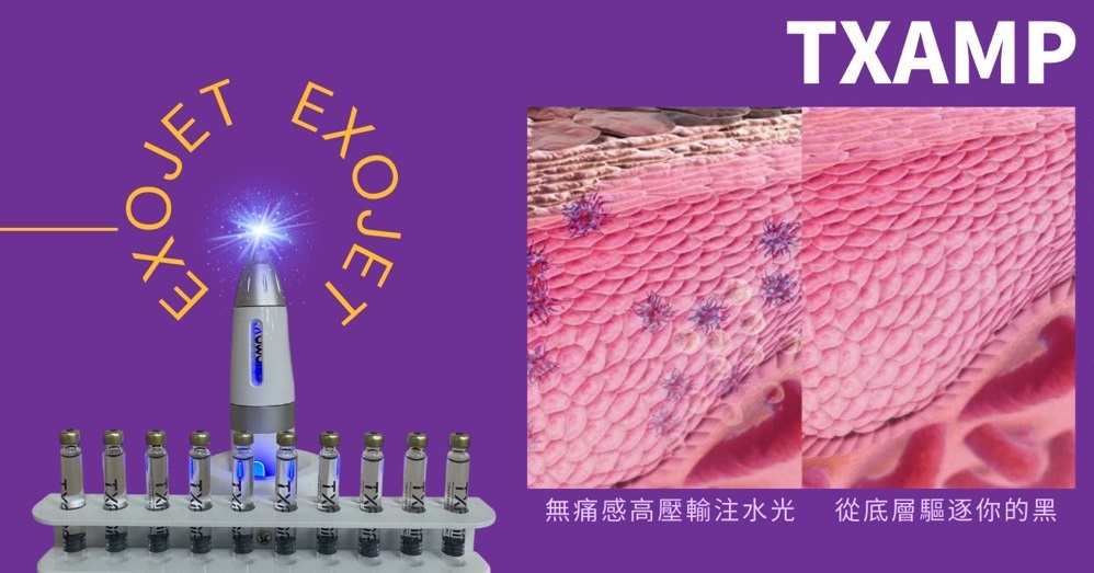 【EXO-JET高壓導注儀以高壓氣動方式將TXAMP美白導注安瓶精華液活性成分導注至真皮層】高壓氣體經皮輸注 16min 1.2ml 穿透皮膚2mm~5mm EXOJET將精華液管瓶安裝在噴頭手把中 有效將精華液中的活性成分均勻地注入在皮膚底層