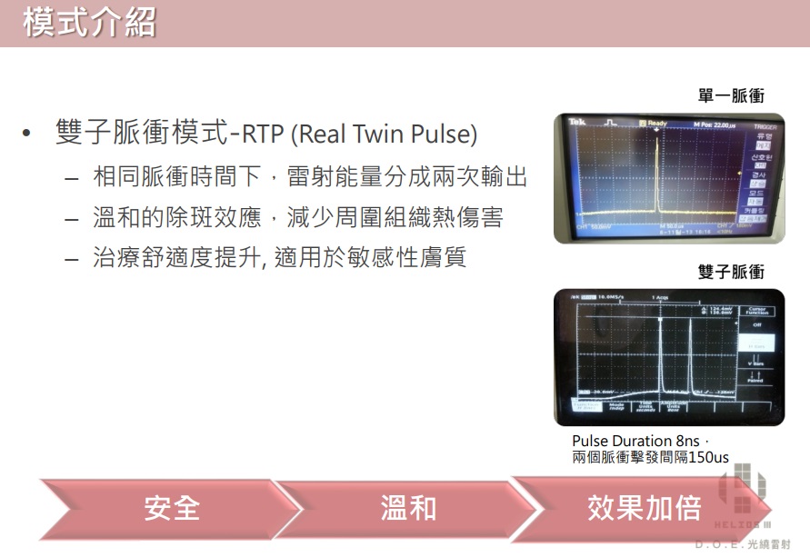 2.RTP雙子脈衝模式 - 提供敏感肌膚較溫和的雷射治療