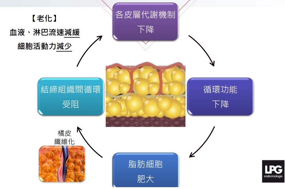 Lipomassage作用機制 老化、代謝下降的惡性循環