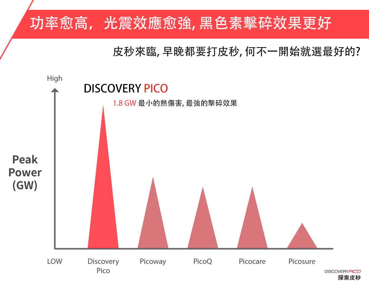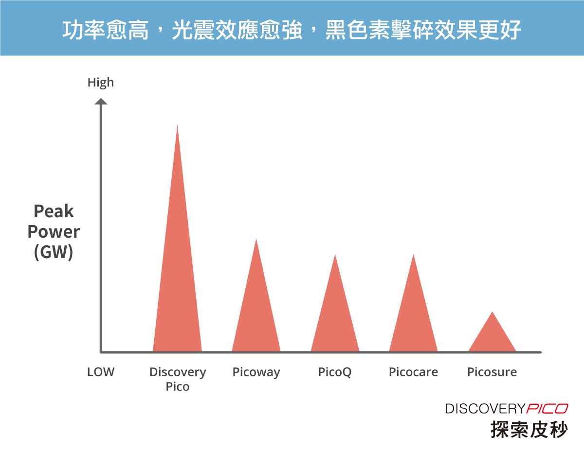 【DISCOVERYPICO 探索皮秒雷射】 功率愈高,光震效應愈強,黒色素擊碎效果更好!