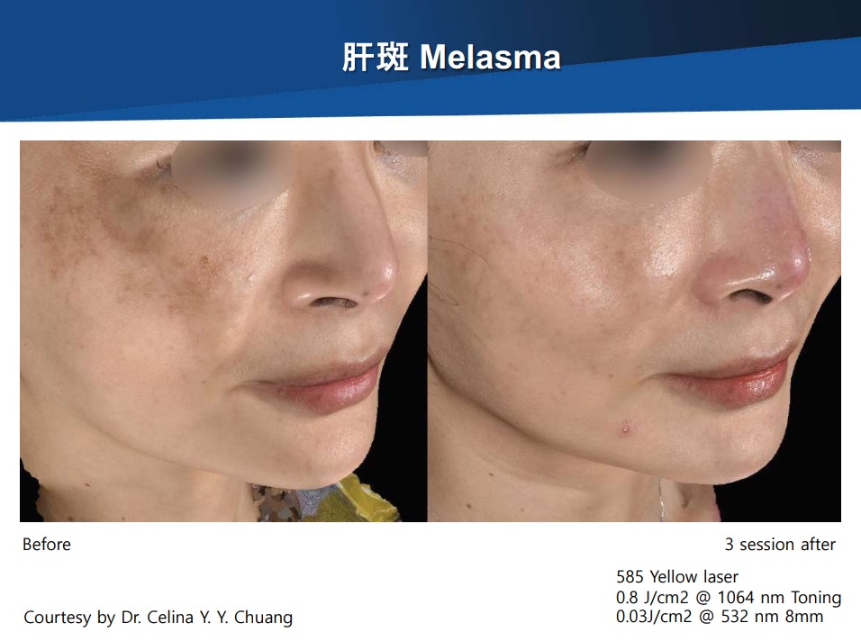 除不去的惱人肝斑: 肝斑問題好發在亞洲女性身上,隨著荷爾蒙變化或是外在環境影響,都會使肝斑問題反覆出現。傳統淨膚雖然能夠淡化斑點,但是都需要相當多次治療才能看到效果,若能量過高,一不小心就會惡化。