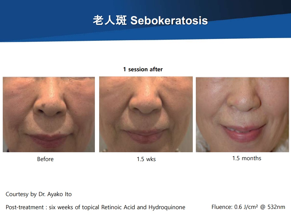 秒殺黑色素(除斑): 感到最困擾的肌膚問題就是臉上暗沉沒有光澤、斑點曬斑、毛孔粗大...等,臉上有掃不完的歲月痕跡。皮秒的能量集中,能瞬間震碎黑色素粒子,能力更好,清除率更高。 也由於在能量耗損前瞬間就震碎目標物,減少了組織熱傷害程度,有效降低術後反黑機率、更安全,即便深色皮膚治療也不用擔心。所以在亞洲人種或治療對熱敏感的肝斑治療,特別有幫助。