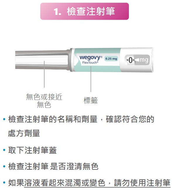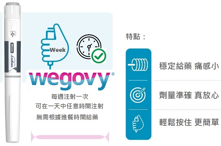 具體規格、用法用量和使用說明等,請參考 Wegovy® 中文仿單
