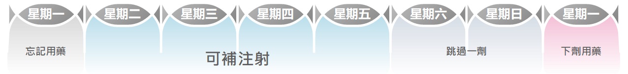 注射常見Q&A Q:忘記用藥或須調整注射時間,該怎麼做呢 ?