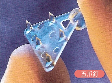 五爪釘也就是拉皮固定釘,五爪釘的材質Polylactide,是人體可以吸收的乳酸和果酸的聚合物。約半年到一年內,固定爪釘就會被人體溶化且吸收掉了,此時拉皮的效果就會固定,無須擔心它會脫落或造成人體的傷害。