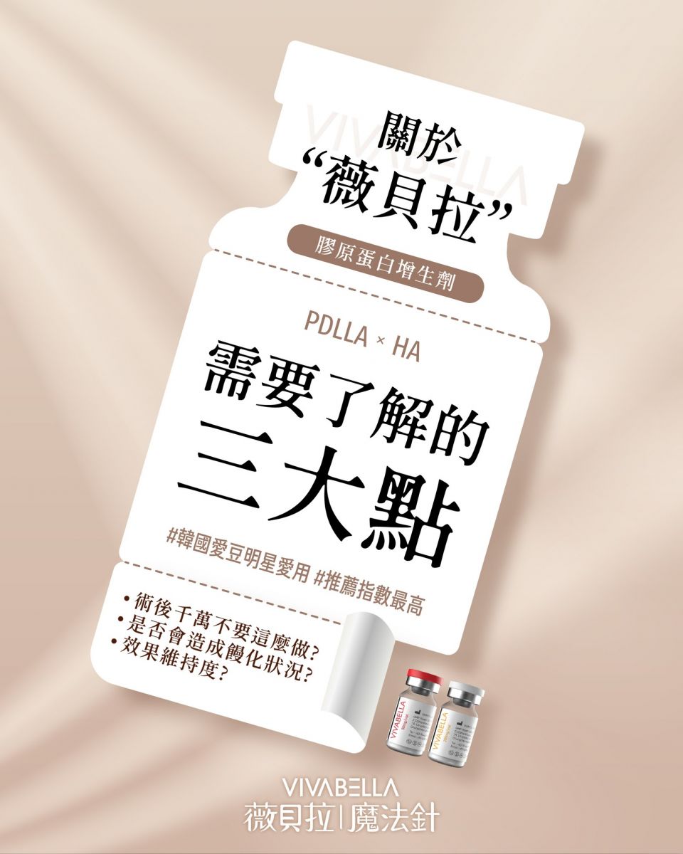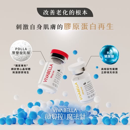 VIVABELLA薇貝拉魔法針是新一代的膠原蛋白增生劑,通過歐盟CE、韓國MFDS的認證,更是第一個在台灣TFDA取得認證的「多效型膠原蛋白增生劑」,結合聚雙旋乳酸PDLLA長期刺激膠原蛋白增生的特性,及玻尿酸HA帶來的立即填充效果,施作後不易產生結節、不須按摩、舒適度高。