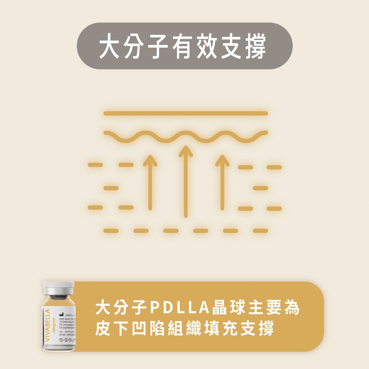 VIVABELLA 200 大分子 → 結構支撐、輪廓填補、深層膠原刺激