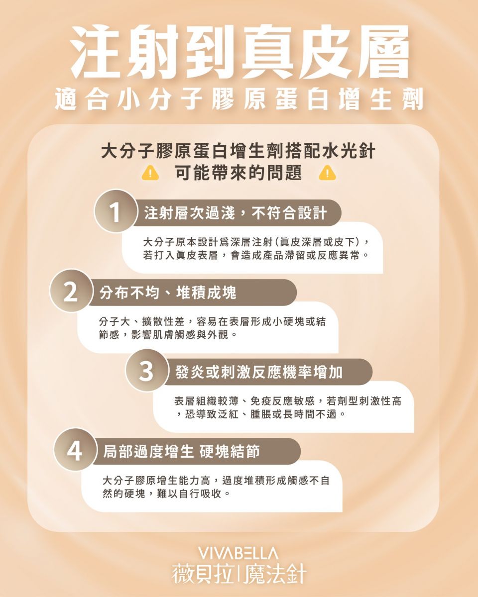 大分子膠原蛋白搭配水光針,可能引發: