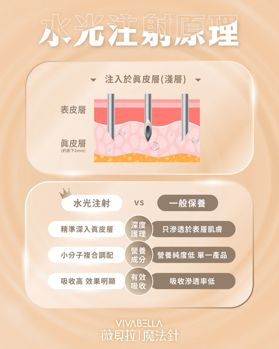 小科普:水光注射於真皮層淺層(約2mm)