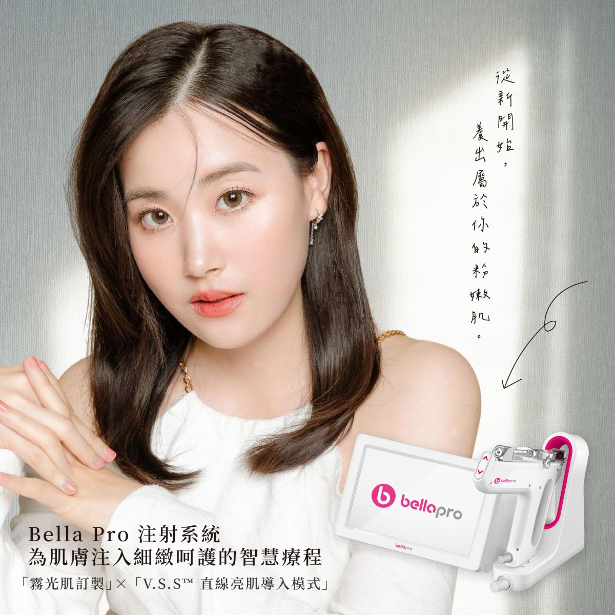 我們採用全新引進的智能水光系統 Bella Pro ,擁有多項設計優勢,協助提升施作舒適度與療程品質: 智能吸力調控設計: 三段式負壓,減緩施打時不適感。 UV-LED 衛生防護技術: 每次施作前高效消毒針具接觸區域。 多部位適用: 可進行臉部、頸部、頭皮等部位的深層管理。 專利九針設計: 注射精細,分布均勻,有助提升施作一致性。 穩定效率提升: 縮短等待與恢復時間,增加接待量與整體效率。