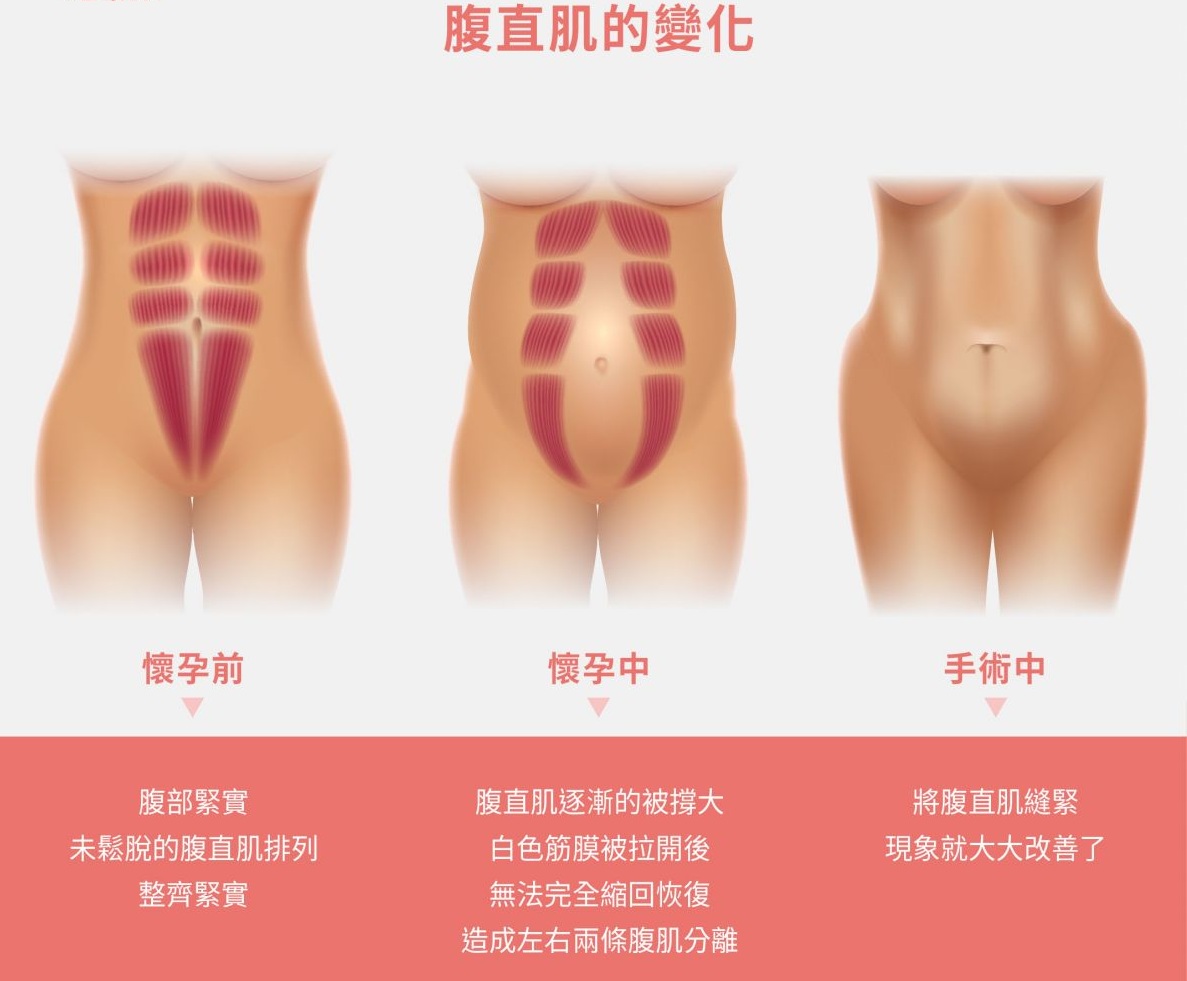 產後婦女常會有肥胖、腹部鬆弛(肚皮鬆垮)及妊娠紋等狀況,因為在懷孕過程中,腹部筋膜會過度拉扯,導致產後筋膜鬆弛,甚至腹直肌分離,使腹壁的張力變小,造成原屬於腹腔的內容物往外凸出,而形成肚子的隆起及外凸,腹部鬆弛、肚皮鬆垮這樣的情形,單純的抽脂並無法改善,可以透過腹部拉皮手術的方式,重新縫合腹部筋膜,恢復其彈性及緊緻度,改善腹部張力達到縮小腹部的目的。
