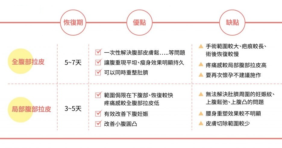 ![]() 全腹部拉皮&局部腹部拉皮比一比: