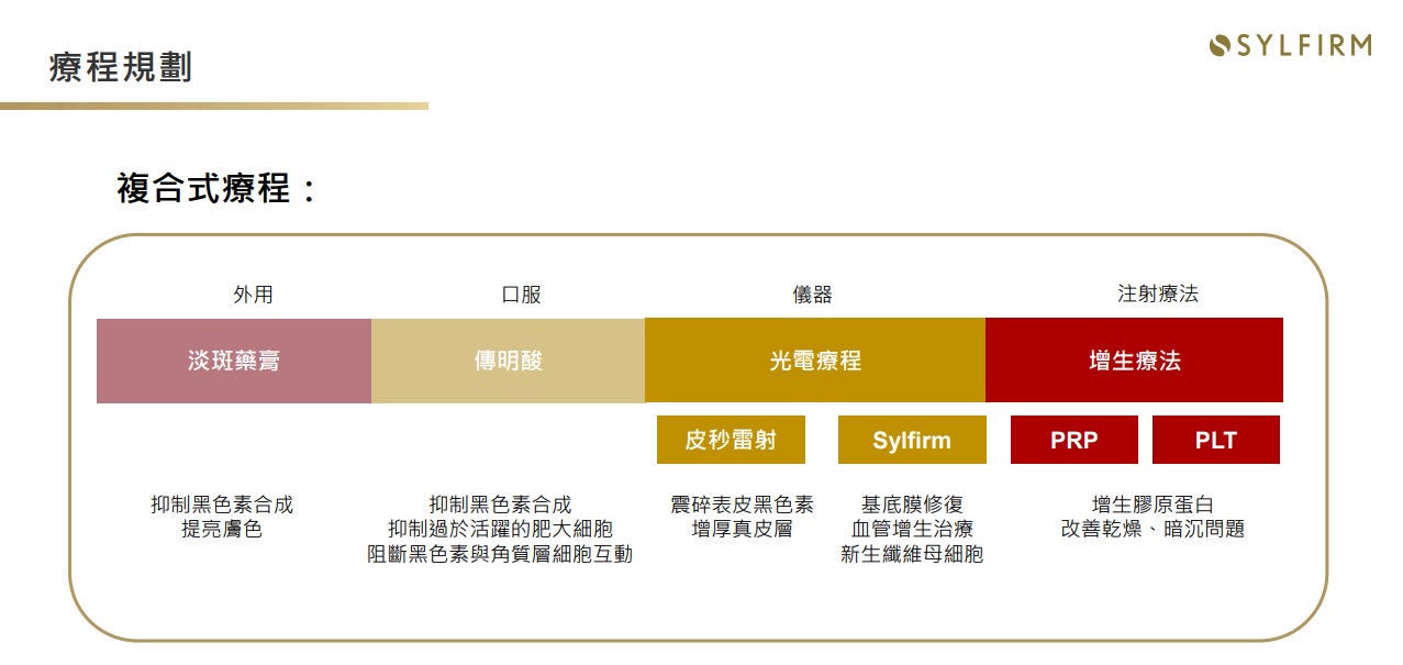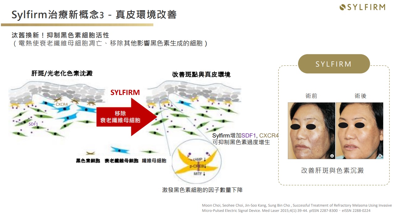 肝斑成因眾多且複雜,除了表面可見的黑色素問題之外,更涉及到整個皮膚健康度與生態環境,過去除斑主要會以「破壞黑色素」來達到快速除斑的效果,但肝斑膚質較脆弱、同時存在發炎情況,此時可能讓皮膚更加脆弱,提高後續反黑機率,也無法做到真正根治肝斑。當皮膚受到外界刺激,又會再發炎、產生黑色素,造成肝斑反覆發作,落入惡性循環。 其實,治療難纏的肝斑關鍵在「重建健康的皮膚」,改善膚況後再清除黑色素,相較於追著黑色素猛打,養膚的方式更能培養出不易長斑的好膚質。Sylfirm矽谷電波,就是專為肝斑患者而生,重建皮膚健康厚度的新選擇。