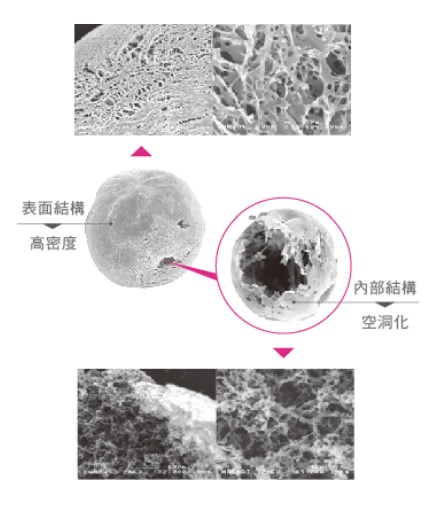 精靈聚雙旋乳酸的產品外觀為白色球體,使用前需用無菌水泡製至少30分鐘使其溶解。泡製後的聚雙旋乳酸,在高倍數顯微鏡底下,會看到空洞的球體,這就是精靈聚雙旋乳酸的「多孔性微球體」科技。多乳性微球體進入皮膚後,可吸引膠原蛋白至球體內部居住、生長,漸漸長出更多自己的膠原蛋白。